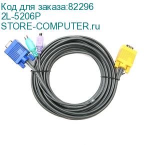 ATEN (Кабель KVM PS/2(Kлав+мышь)(Male)+HDB15(Male) - SPHD15(Male) 6,0м., тонкий, черный.) 2L-5206P